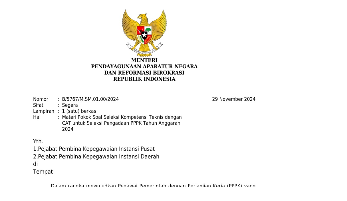 Pengumuman Jadwal Selkom PPPK Tahap I