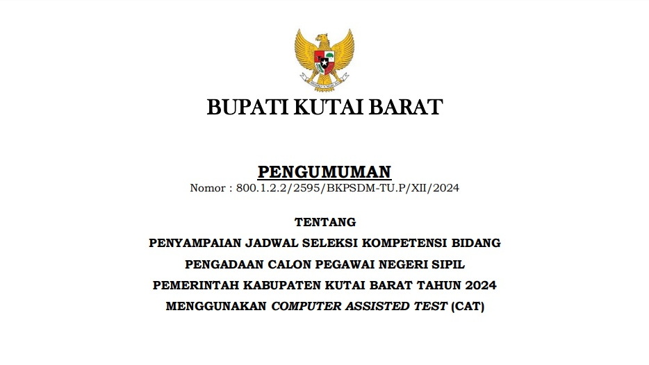 PENGUMUMAN JADWAL SKB KAB.KUTAI BARAT TA 2024