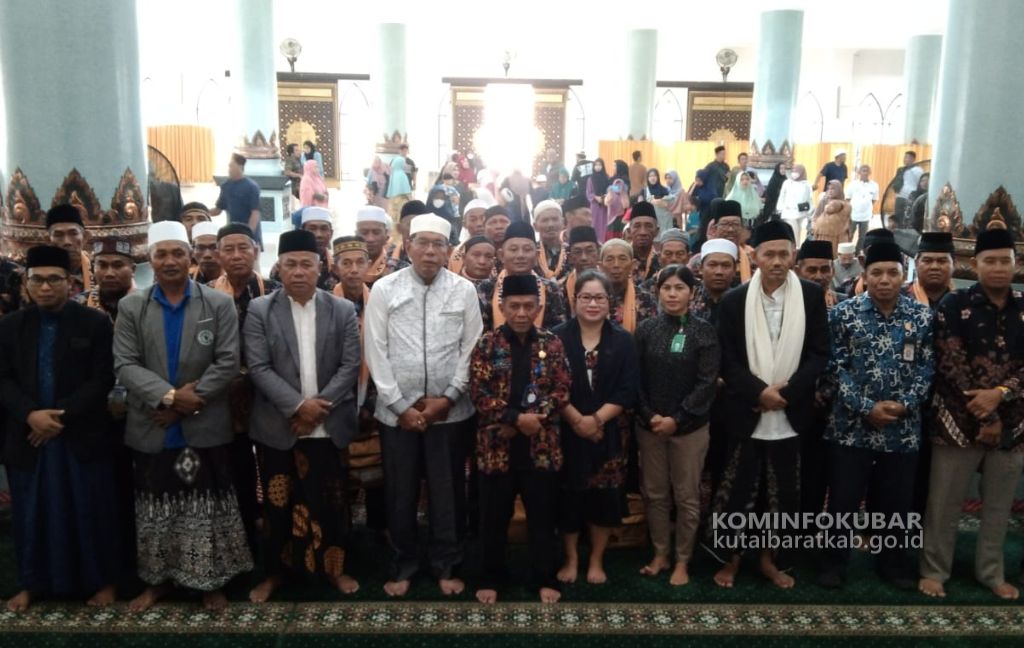 Asisten II Rakhmat Foto Bersama Pada Pelepasan Rombongan Peserta Umroh Tahap II Kutai Barat. Masjid Al Muttaqin Islamic Center Kutai Barat, Kec. Melak. Kamis (14/09/2023). Foto : Ria.