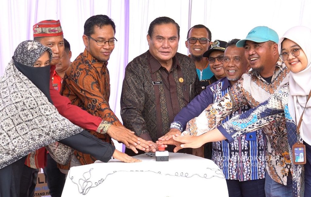 Bupati Kutai Barat FX Yapan meresmikan penyalaan listrik 24 jam Kampung Minta, Kec. Penyinggahan. Kamis (31/08/2023). Foto : Welin.