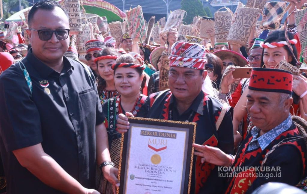“Yang tentunya hari ini menjadi kado yang sangat istimewa dari Lembaga Pencatat Rekor Nasional Muri. Dan ijinkan Muri mengapresiasikan kembali peristiwa rekor superaktif pada hari ini yang dianugerahkan dengan bangga dan hormat atas nama warga masyarakat Kutai Barat dan hari ini akan diterima oleh Pemerintah Kabupaten Kutai Barat Yakni Bupati FX Yapan atas perisitiwa rekor memakai gawaakng atau anjat dengan peserta terbanyak yang tidak hanya di Indonesia tetapi dunia”, ucap Direktur Marketing Muri, Awang Rahargo. Di Taman Budaya Sendawar (TBS), Kec. Barong Tongkok. Minggu (05/11/2023).