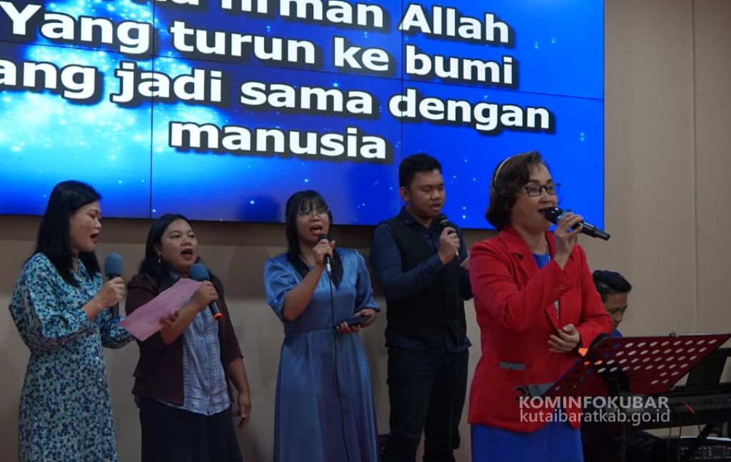Pegawai Diskominfo Kutai Barat Menyanyikan Pujian Pada Perayaan Natal.  Kantor Diskominfo Kutai Barat, Sendawar. Kamis (4/1/2023). Foto : Natasha.