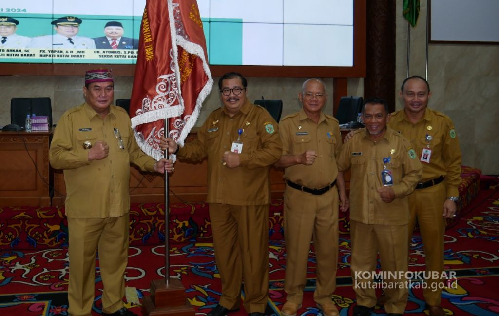 KOMINFOKUBAR-SENDAWAR. Terima Panji Keberhasilan pada Malam Anugerah HUT Ke-67 Provinsi Kalimantan Timur lalu, Bupati Kutai Barat FX. Yapan mengucapkan rasa syukur dan terimakasih pada saat Rapat Koordinasi Pengarahan Kepala Daerah Terkait Program Kegiatan Kabupaten Kutai Barat Tahun 2024. bertempat di auditoriun Aji tulur jejangkat, sendawar. Senin, (15/01/2024).