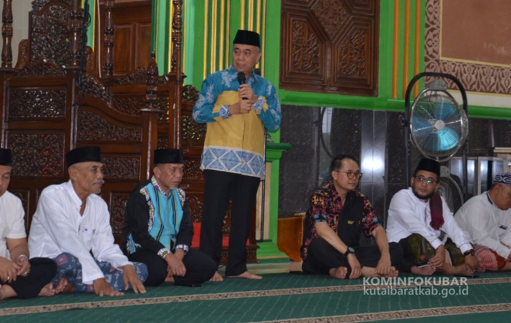 Wakil Bupati Barat H. Edyanto Arkan Saat Menyampaikan Sambutan. Masjid Sabilussalam, Kel. Melak Ilir, Kec. Melak. Kamis (14/03/2024). Foto : Dokumentasi