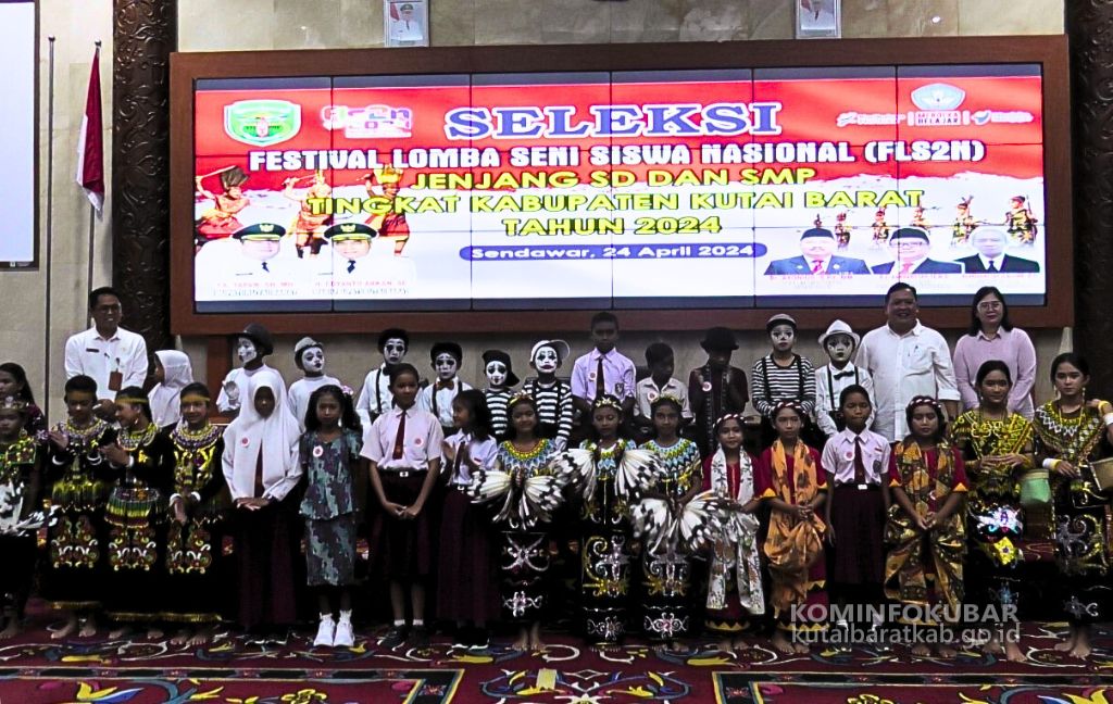 KOMINFOKUBAR-SENDAWAR. Pemerintah Kabupaten Kutai Barat Melalui Dinas Pendidikan dan Kebudayaan Kutai Bara gelar Seleksi Festival Lomba Seni Siswa Nasional (FLS2N) Jenjang SD dan SMP Tingkat Kabupaten Kutai Barat Tahun 2024. Bertempat di Auditorium Aji Tullur Jejangkat, Sendawar. Rabu (24/04/2024).