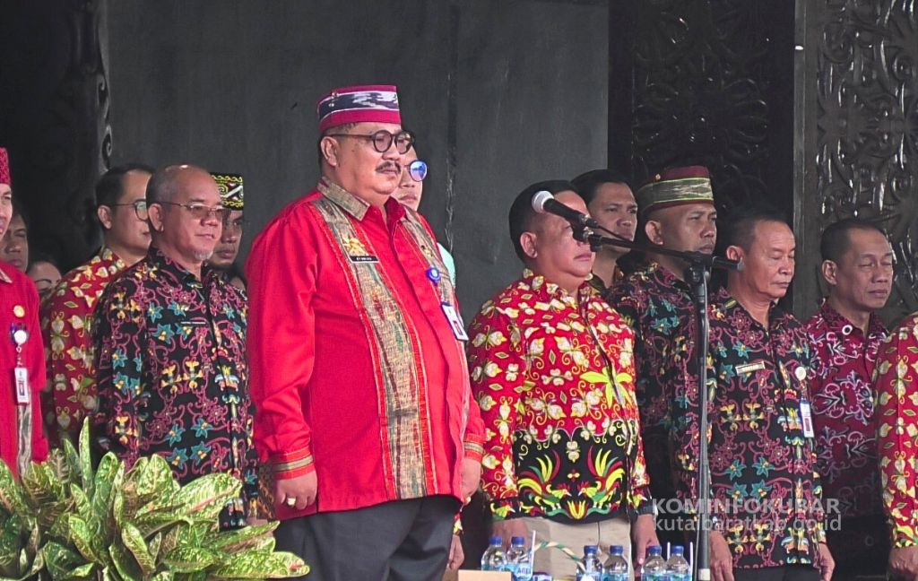 Sekretaris Daerah Kabupaten Kutai Barat, Ayonius Menjadi Inspektur Upacara Peringatan Hardiknas. Taman Budaya Sendawar, Kec. Barong Tongkok. Kamis (2/5/2024). Foto : Reynaldi