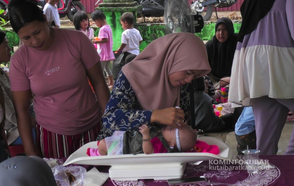 Petugas Posyandu Menimbang dan Mengukur Badan Balita Di Posyandu Kampung Linggang Purwodadi. Rabu, (12/06/2024).