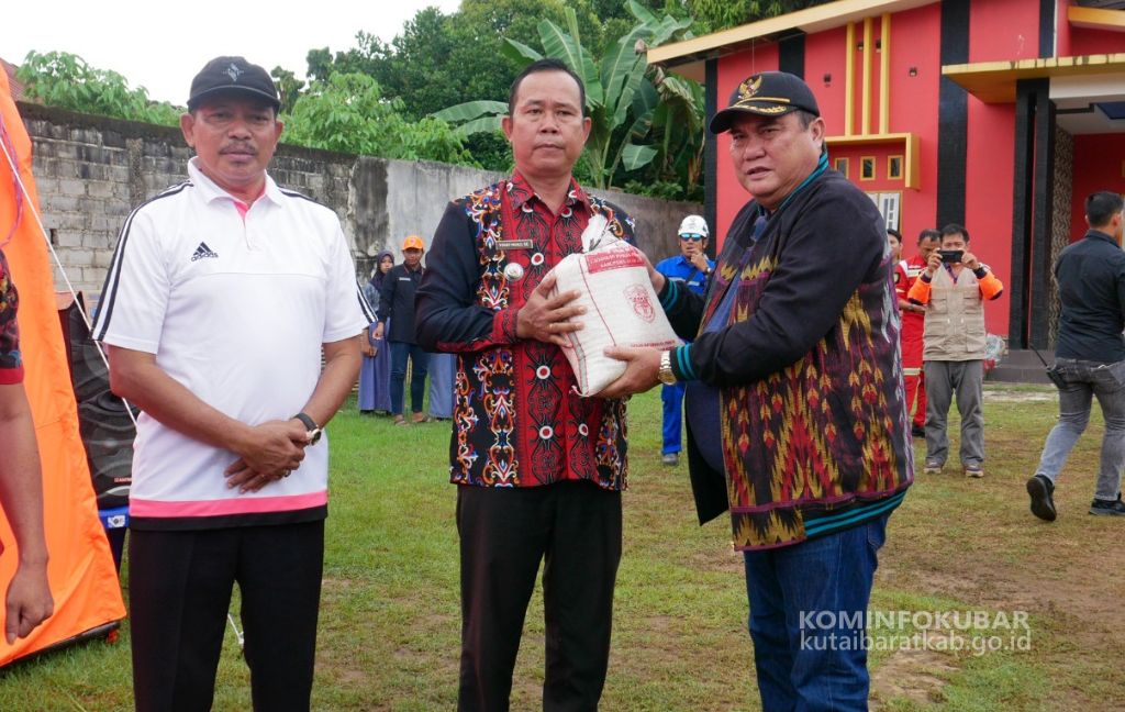 Bupati Kutai Barat Serah Bantuan Beras Kepada Camat Tering Yohanes Ngau. Posko Lapangan Tanggap Darurat Bencana Banjir Dan Longsor, Kec. Tering. Foto : Rahma