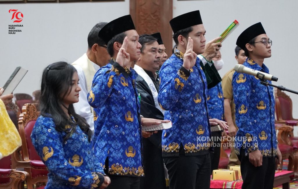 KOMINFOKUBAR-SENDAWAR. Sebanyak 25 pegawai Aparatur Sipil Negera (ASN) yang terdiri dari 22 pegawai tenaga teknis dan 3 pegawai tenaga kesehatan di lingkungan Pemerintah Kabupaten Kutai Barat mengambil sumpah dan janji PNS tahun 2024. Pengambilan sumpah dan janji dipimpin oleh Plt. Asisten Administrasi Umum, Yuli Permata Mora, di Auditorium Aji Tullur Jejangkat (ATJ), Sendawar, Senin (29/07/2024).
