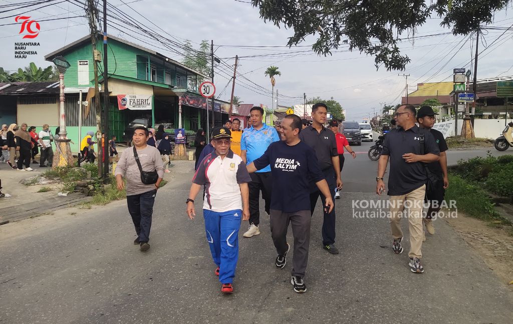 Asisten II, Rakhmat mengikuti jalan sehat dalam rangka anniversary Media Kaltim Ke 4. Melak, Minggu (21/07/2024) Foto : Lilis