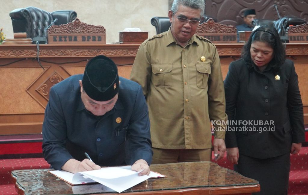 Bupati Kutai Barat FX. Yapan Menandatangani Persetujuan DPRD Bersama Dengan Kepala Daerah Terhadap RPJPD. Sendawar, Rabu (10/07/2024). Foto : Reynaldi