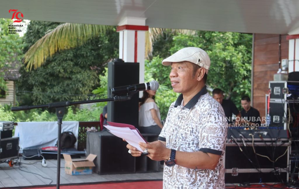Staf Ahli Bidang SDM dan Kemasyarakatan, Yustinus Giri Menyampaikan Sambutan Bupati Kutai Barat Pada Pembukaan Rangkaian Peringatan HUT Media Kaltim Ke 4. Melak, Jumat (19/07/2024). Foto : Lilis