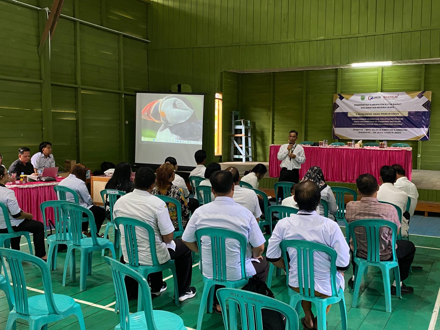 Sekretaris Camat Muara Lawa sedang menyampaikan tujuan dibentuknya Tim Kecamatan Peduli di Kampung Lambing