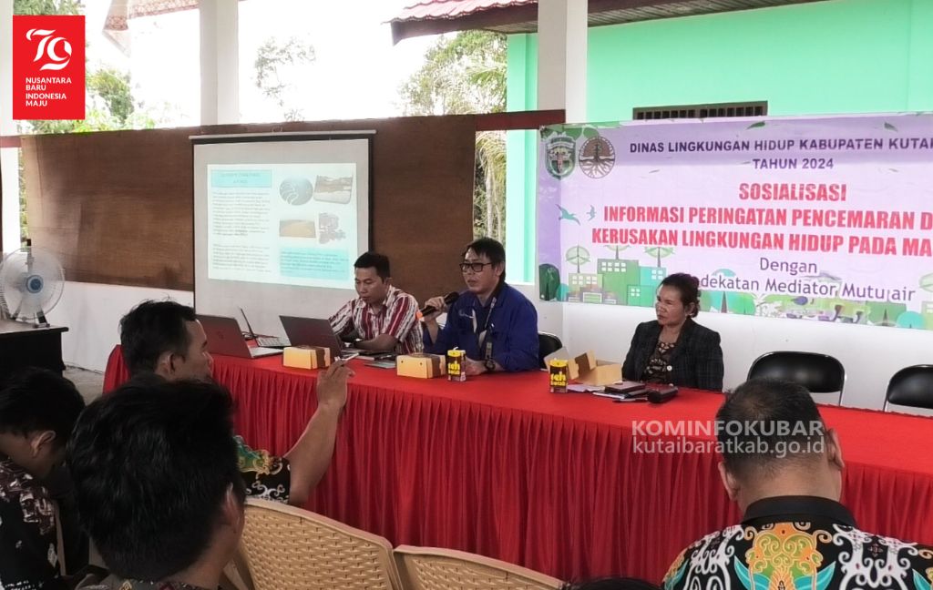 KOMINFOKUBAR-NYUATAN. Selaraskan peran masyarakat dan pemangku kepentingan dalam menjaga serta mengelola mutu air. Dinas Lingkungan Hidup Kutai Barat melalui Bidang Pengendalian Pencemaran dan Kerusakan Lingkungan Hidup (PPKLH) mensosialisasikan informasi peringatan pencemaran dan/atau Kerusakan lingkungan Hidup pada masyarakat dengan pendekatan mediator mutu air di Kantor Kecamatan Nyuatan, Kamis (01/08/2024).
