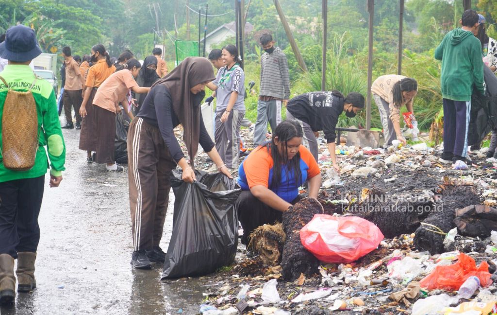 Para Pelajar Memungut Sampah Pada Aksi Bersih Lingkungan di TPS Perumahan Korpri Melak, Jumat (27/09/2024). Foto : Reynaldi