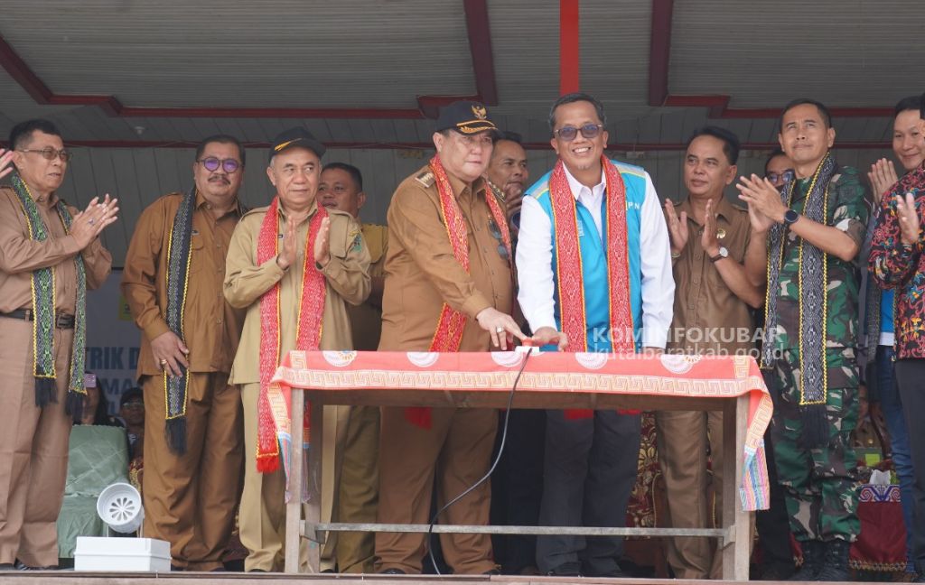 KOMINFOKUBAR-BESIQ. Secara seremonial, Bupati Kutai Barat, FX. Yapan meresmikan penyalaan listrik 11 kampung yang ditandai dengan simbolis penekanan saklar dan penyerahan Sertifikat Laik Operasi (SLO). Peresmian itu dilaksanakan di di Lapangan Bola Kampung Besiq, Kec. Damai. Senin (30/09/2024).