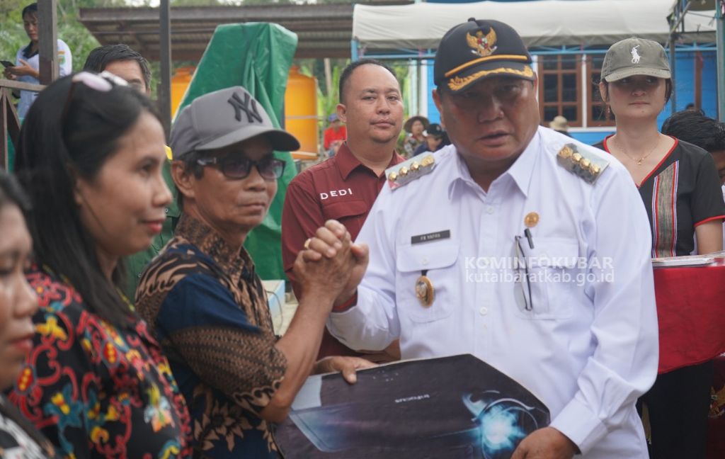 Bupati Kutai Barat, FX. Yapan Menyerahkan Bantuan Pada Kunjungan Kerja Ke Kecamatan Siluq Ngurai. Rabu (02/10/2024).