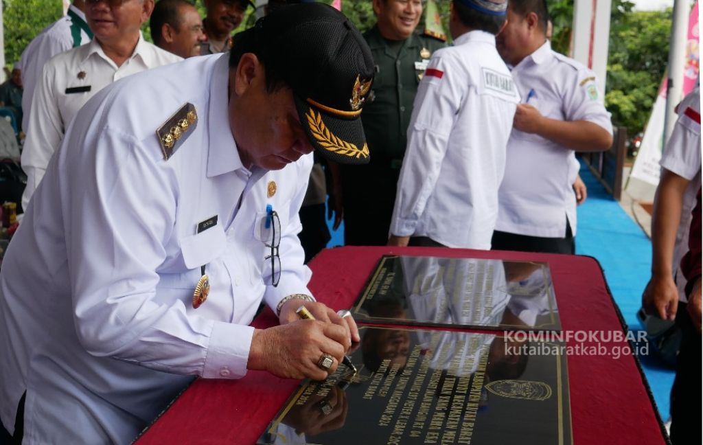 Bupati FX. Yapan meresmikan pembangunan dari kegiatan yang bersumber dari ADD/ADK dengan menandatangani salah satu prasasti. Melak Ulu, Rabu (06/11/2024). Foto : Natasha