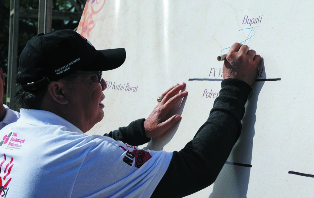 Bupati Kutai Barat, FX. Yapan menandatangani komitmen bersama pada peringatan hari anti korupsi di alun-alun Itho, Jum’at, 6/12/2024 : Foto : Reynaldi