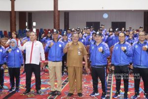Sekretaris Daerah Kutai Barat, Ayonius foto bersama dengan Kontingen Atlet Bapor Korpri Kutai Barat yang mengikuti Porprov Kaltim 2024 di Auditorium Aji Tullur Jejangkat, Senin,…