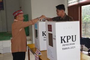 Wakil Bupati Kutai Barat, H. Edyanto Arkan memasukkan surat suara pada kotak suara di TPS 010, Kelurahan Melak Ulu, Kecamatan Melak, pada Rabu pagi (27/11/2024).…
