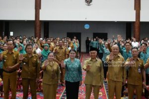 Wakil Bupati Kutai Barat, H. Edyanto Arkan dan Ketua TP-PKK Kutai Barat, Yayuk Seri Rahayu Foto Bersama Pada Pembukaan Rakor Pencegahan dan Intervensi Stunting. Foto…