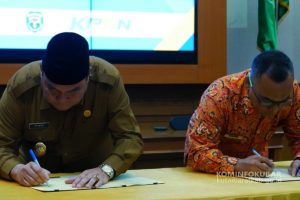 Bupati Kutai Barat, FX. Yapan Bersama Kepala Kanwil DJPb Prov. Kaltim, M. Syaibani Menandatangani Nota Kesepakatan. Ruang Rapat Diklat, Sekretariat Daerah Kabupaten Kutai Barat, Sendawar.…