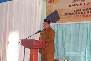 Bupati Kutai Barat. FX. Yapan Saat Menyampaikan Sambutan Pada Pembukaan Verifikasi Lapangan Lomba Dasa Wisma di BPU Kampung Srimulyo, Kec. Sekolaq Darat. Senin (24/06/2024). Foto…